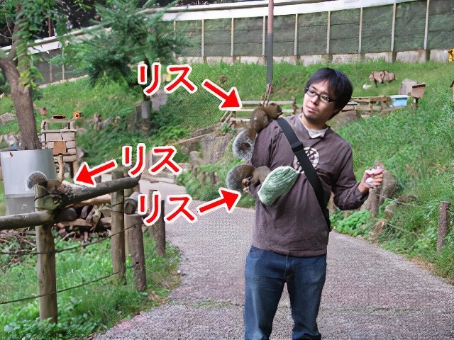 隣にいた40代くらいの女性の肩にリスが偶然乗ったのは目撃したが、僕に乗ってくることはなかった。その女性は「キャ」という楽しそうな悲鳴をあげていた。リスはその年齢層が好きなのだろうか? 世の中いろいろなニーズがあるからそれはそれで仕方がない。