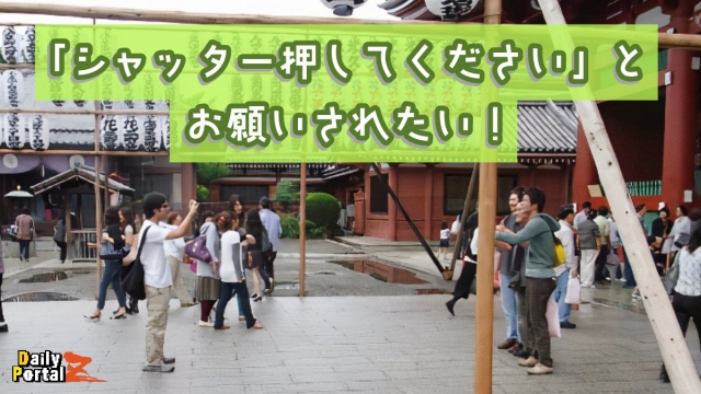浅草寺に来てみると、想像していたよりずっと写真を撮っている人たちがいた。これは、ほっといても「シャッター押してください」とお願いされる状況だと喜んでしまった。