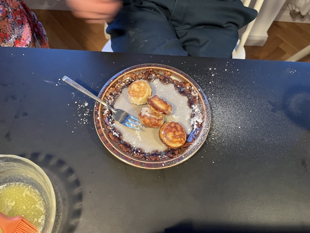 残ったポッフェルチェは、電子レンジで温めてからバター砂糖をかけて夫が朝ごはんに食べた。次の日でも十分おいしかったそう。