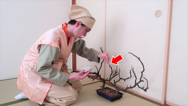 でも、3時間かかった先ほどの盆栽よりもっと大きなサイズの枯れ木、本当におじいさん1人で満開にすることができたのでしょうか?