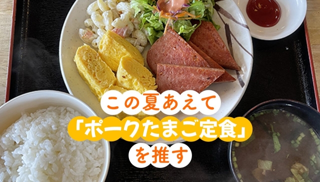 ソーキそばやラフテーもいいが、この夏あえて「ポークたまご定食」を推したい。