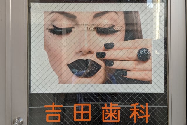 これも歯科だ。この黒いくちびると手のポーズからどのような医療内容を想像すればいいのか。さっきのジムの分かりやすさにくらべると、ポーズが高度に抽象化されているのが分かると思う。