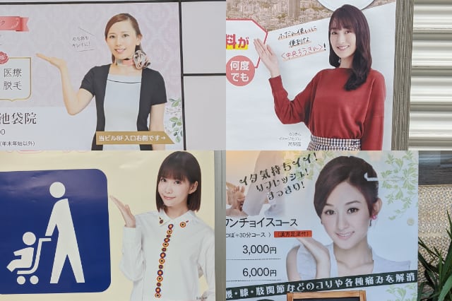 街角に貼られたポスター。女性がヤッホーのポーズで何かを呼びかけていることが多いような気がしていた。