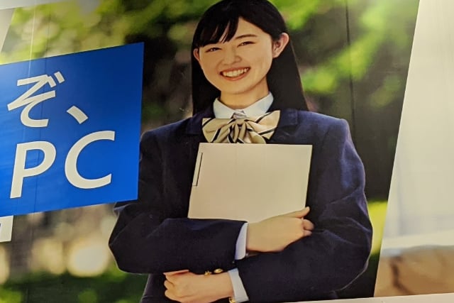 ポスターが何かのサービスを紹介している場合には、人物のポーズはそのサービスを受けている場面となることが多いようだ。