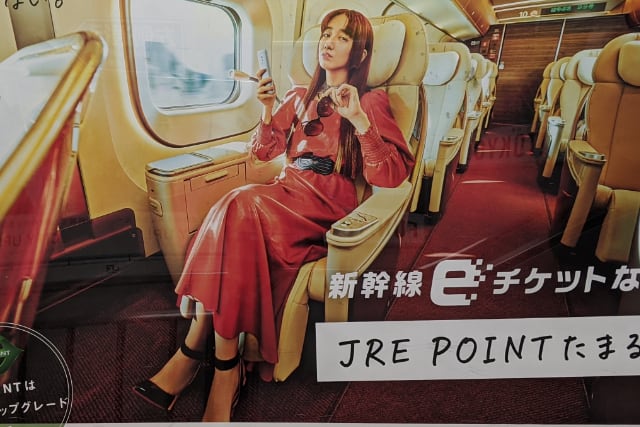 新幹線のチケットであれば、ゆうゆうと座席に座っている場面。