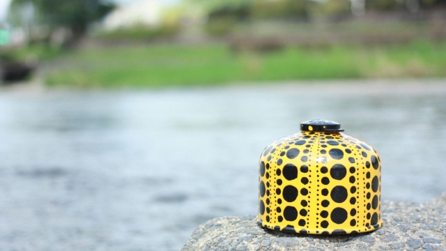 PRIMUSのガスボンベはもともと黄色いのだが、この上に直接模様を描き込んではなにがなんだかわからなくなってしまう。