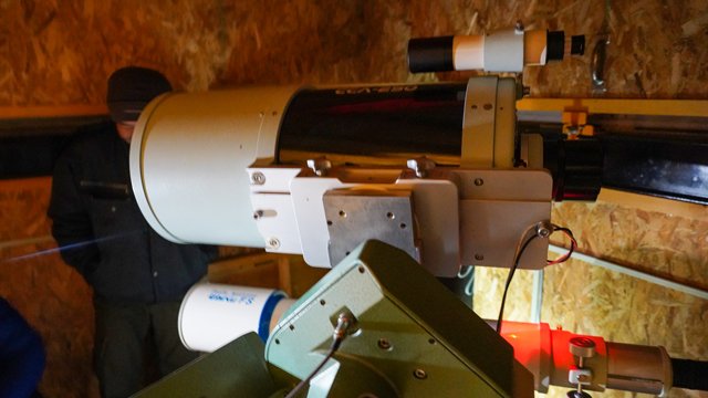 1月の終わり、気温はマイナス5℃くらいだろうか。いよいよ天文台と言われた謎の小屋に潜入すると、四畳ほどのスペースにでかい望遠鏡が2台並んでいた。