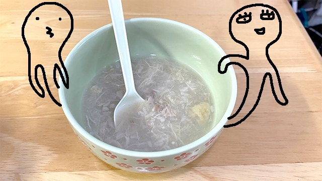 そこで汁かけめしの基本にもどり、スープのなかに完全にごはんを入れるストロングスタイルで味わった。