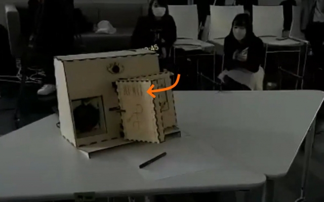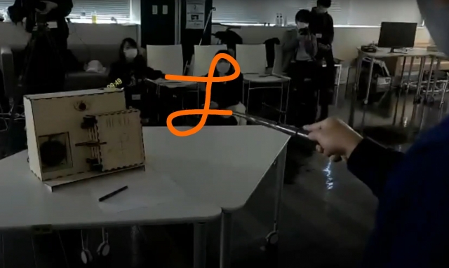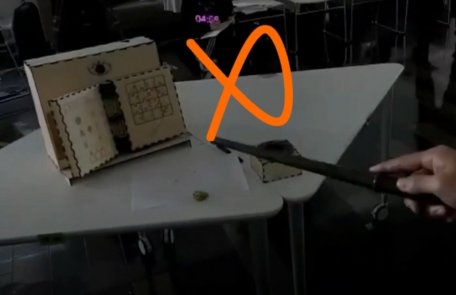 魔法の杖の仕組み。練習ではうまくいっていたが本番は外光があったり生配信用のカメラの赤外線をとらえてしまったりで苦戦したようだ。アドバイザーの先生に終了後「だから早めに完成させてテストするよう言ったじゃん~笑」と言われていた。いやこれ、めちゃくちゃいい経験をしているな……。社会に出てからもよくあるのよ……。
