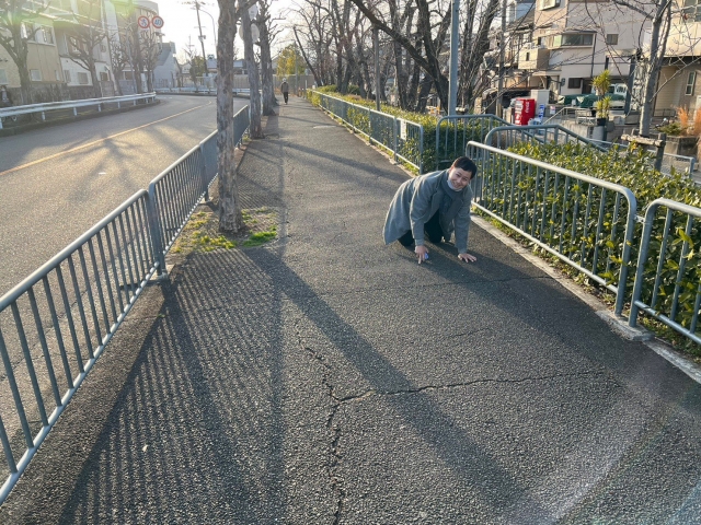 悪ふざけと思われたくないので友人と距離を置きながら歩き、大人とすれ違うたびに大げさに転んでみたが、誰もが素知らぬ顔でスルー。一人も声をかけてくれなかった。寂しい町である。