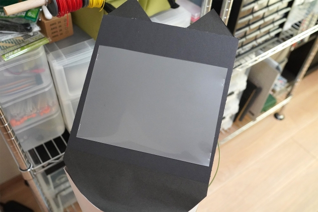 次は顔部分だ。ネコのロボットのかわいさの90%は顔が占めていると言ってもいいだろう。
