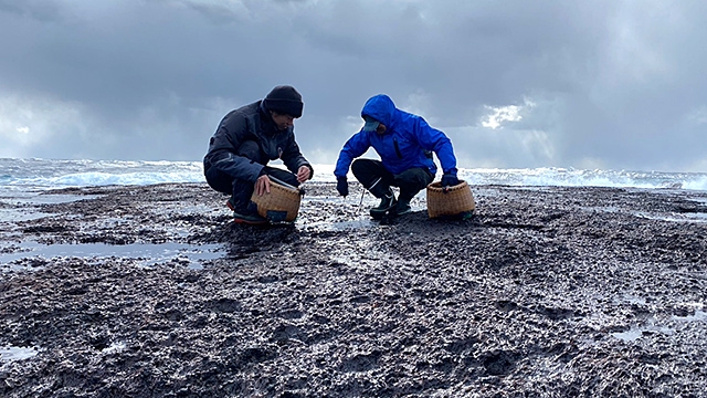 風裏の場所とはいえ二月の佐渡なのでまあまあ寒かったが、せっかくなので素手で岩海苔に触れて、ありがたく摘ませていただく。