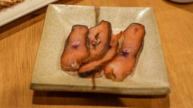 燻製からはスモーキーな芳香が、そうでないサケからは魚本来のうまみが強く香ってくる。