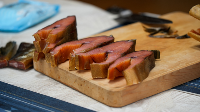 宿泊していた野付半島の民泊「ポンノウシテラス」で燻製山漬けを調理してもらった。