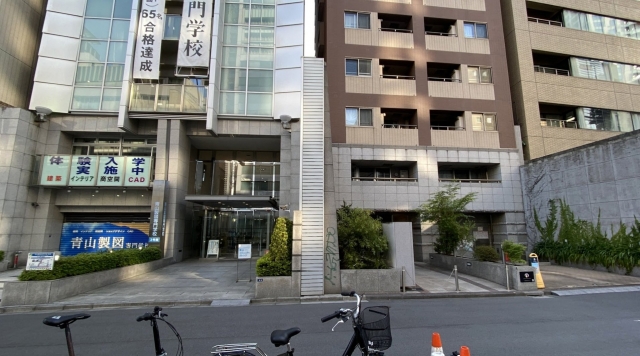 ビルは低い道を1階にして建っており、高い道に面している部分は2~3階になっているようだ。