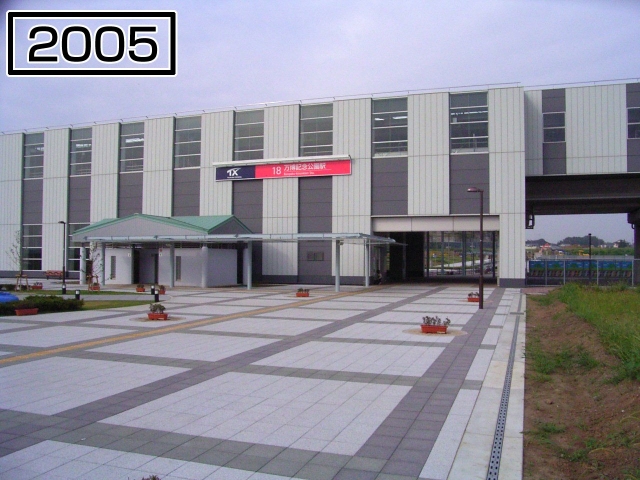 研究学園駅で十分興奮してしまったがまだ2駅ある。隣の万博記念公園駅である。まずは駅の外観から。