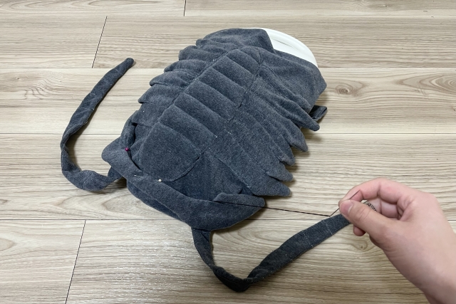 お腹側に足をたくさんつけるのだが、一旦袋状にしたほうがやりやすいのでとりあえず背側と腹側を縫い合わせよう。