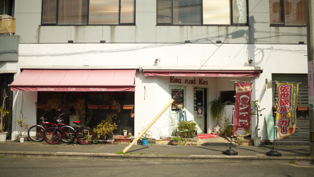 「Esu and Kei.(エスアンドケイ)」は、ブラジリアン柔術の使い手でたまに素潜りで魚を採ったりするご主人と、ウェイトリフティングの県大会で2連覇を果たしたご婦人が経営をしているカフェだ。1998年から続く、佐世保のバーガー店としては老舗に入る。