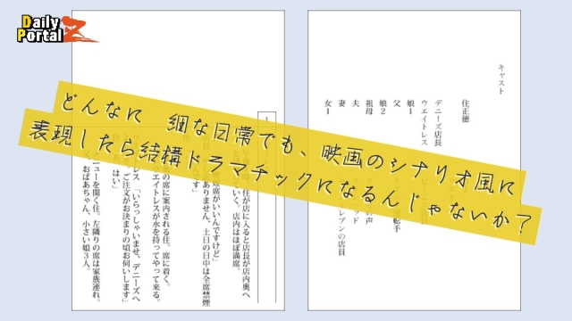 こうして、ありのままの生活をシナリオに起す。脚色は一切行わない。