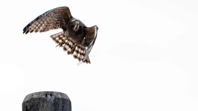 冬の奄美大島で見られる代表的な渡り鳥といえばサシバである。尾羽の横シマ模様が美しい小型の猛禽類で、2000羽近くが奄美大島で冬を越す。