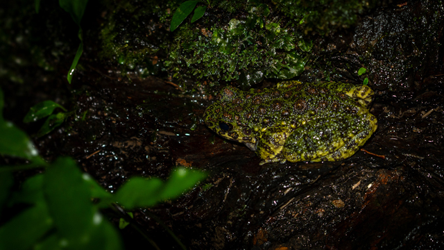 最後の最後で西さんが、沢に響くかすかな鳴き声をたよりに天然記念物のアマミイシカワガエルを見つけてくれた。
