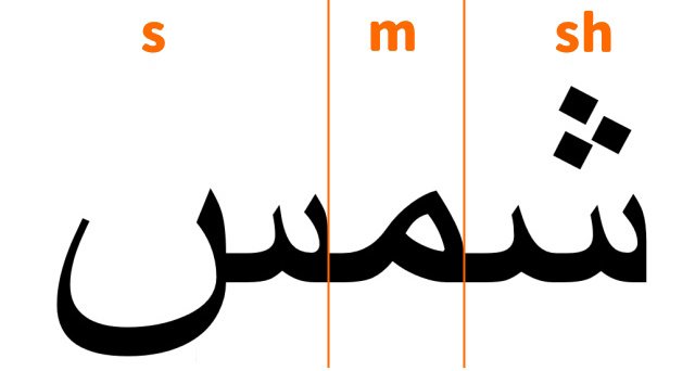 アラビア語は右から左に読む。右からsh、m、s。たしかにシャ(sh)ム(m)ス(s)だ。