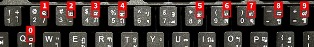 タイ語のキーボードには「記号キーと数字キーにタイ文字の割り当てはしたくない」という思惑はなかったようだ。