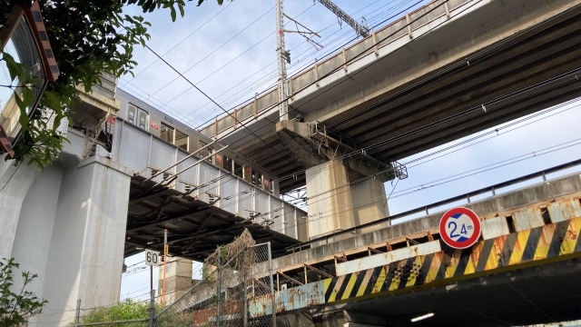 3つの線路+道路の四層構造