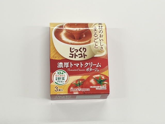 トマトの味が濃厚さで美味しい。ただこれは本当に濃厚な商品なのか、お湯の分量の加減なのかは曖昧なところである。でも濃さを調整できるところが、インスタントシール(汁)の良いところでもあるのだ。