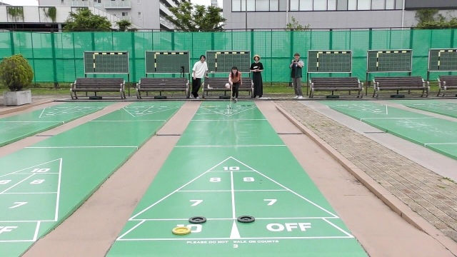 スポーツの中にはそもそもうまく遊ぶための練習が必要なものも多いが、シャッフルボードはルールを聞いて数回プレイしただけですぐコツを掴むことができた。これが老若男女誰もがいつでも遊べる「ニュースポーツ」というやつなのか。