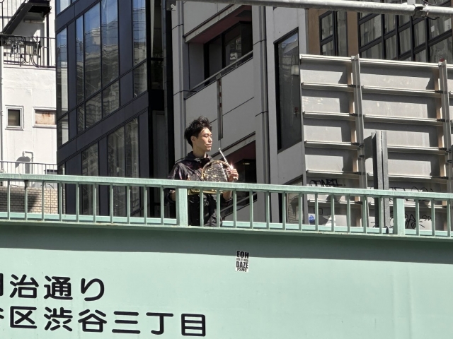 できませんでした記事にはならなかった。ホルンをもって外に出た1時間の写真は1枚も使ってない。そこも英断だ。