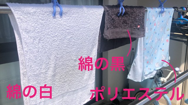 やっぱり光をよく吸収する黒いタオルが一番いい匂いがした。素材は、ポリエステルより綿がいい。凹凸があって匂いの成分を長く保持しておけるのだと思う。