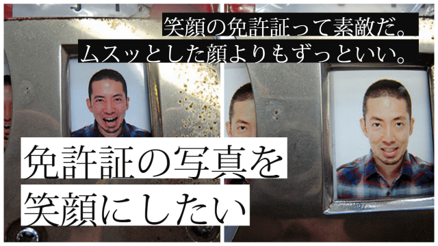 しかし、今回の更新には目的がある。笑顔の写真で免許証を作ってもらうのだ。うまくいくかどうかは分からない。もしかしたら凄く怒られるかもしれない。運転免許証を取得して20年近く、こんなに緊張感のある更新は始めてだ。不備のないよう、更新に必要なものを揃える。住民票と失効してしまった免許証、そして顔写真(笑顔)である。