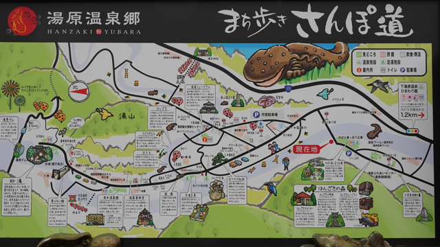 昭和から時が止まったような懐かしみのある街並みのいたるところで温泉が湧きほこり、もうひとつのシンボル、オオサンショウウオことはんざきさんが笑顔でこちらを見てくる。