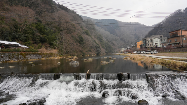 ダムのふもとの露天風呂では2月の底冷えする空気をもろともせずに湯につかる人がちらほら。私にはちょっち開放感がありすぎたので入浴せずにダム近くへ向かう。