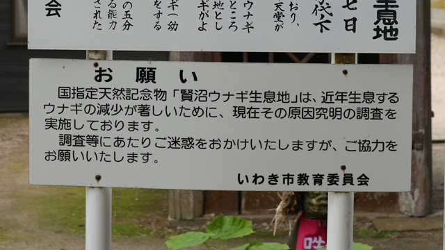 この賢沼(かしこぬま)は古くから大ウナギの生息地として知られ、昭和14年には国の天然記念物の指定を受けている。