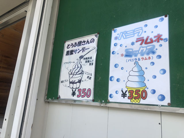 ラムネも魅力的だったが、豆腐屋さんならではの、豆腐が入った黒蜜サンデーを買った。