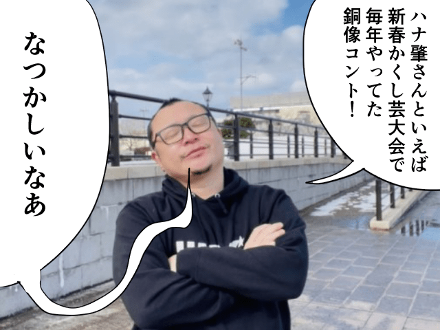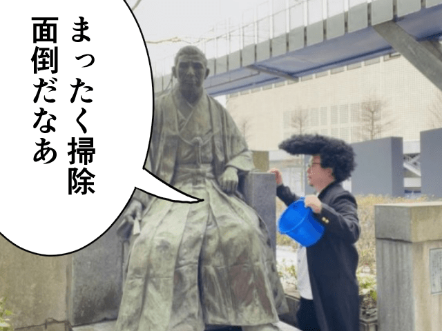 銅像の横に学生たちがたむろしているのを見て、ハナ肇の銅像コントを思い出してしまった。 仮にこの学生たちが掃除道具をもっていたりしたら、銅像がハナ肇にみえるんじゃないだろうか?