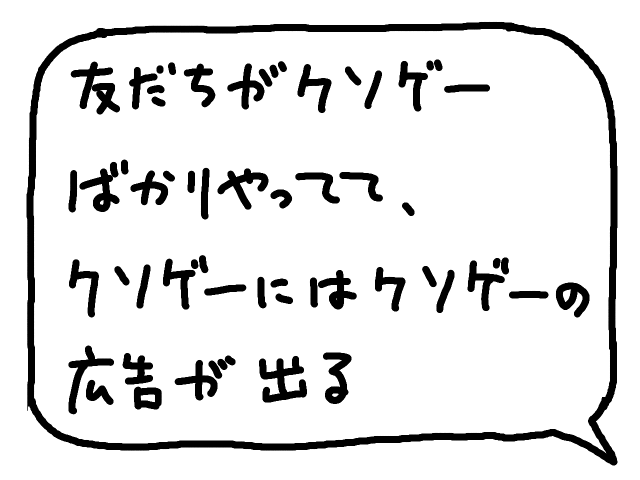 「クソゲー」はファミコン時代につまらないゲームのことを呼ぶ言葉だったけど、たぶん広告が出るって話なのでスマホゲームのことだと思う。スマホゲームでもクソゲーって言葉が有効なんだ。