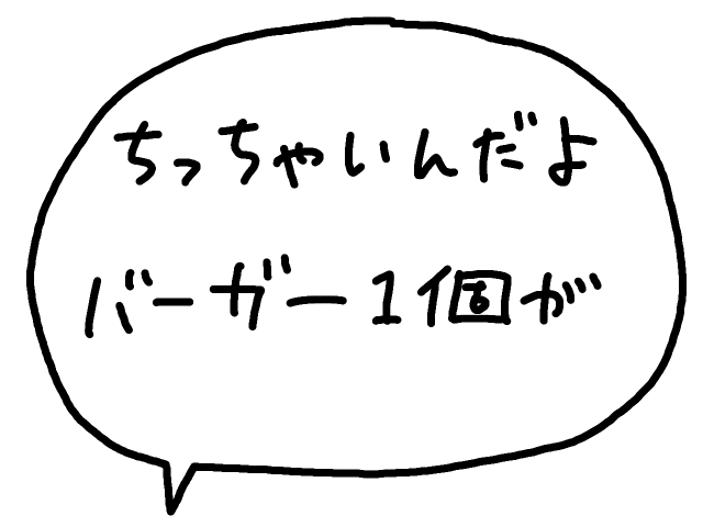 小さいんだ。モスバーガーは美味しいけど小さいと外国人向けのガイドに書いてあった。