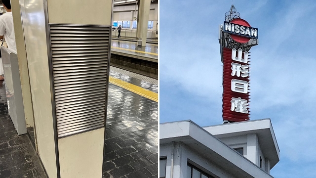 山形県にある山形日産グループ本社の屋上に大きな看板が鎮座しているのですが、とてもレトロです。