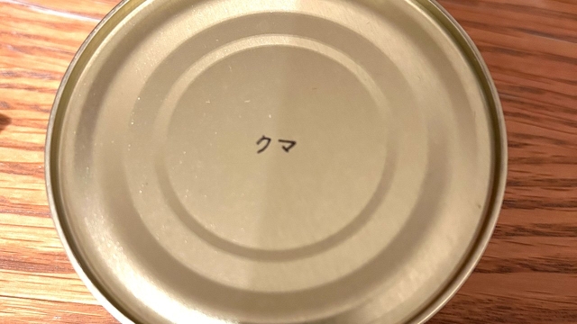 シンプルな缶の表面には2文字「クマ」と記されています。そりゃ熊が入ってるからクマって書いてあるのは当たり前なんですが、何ともシュール。