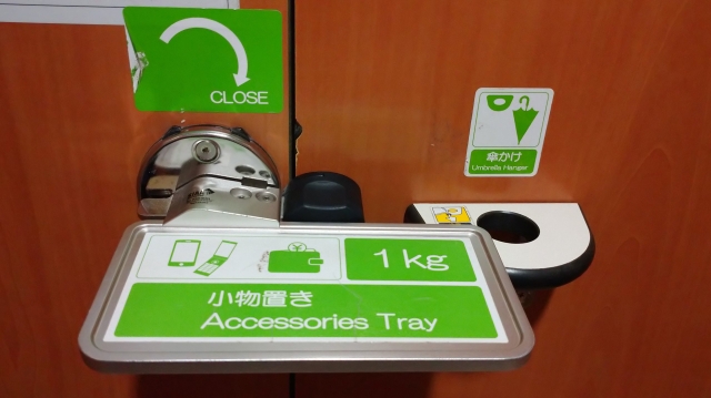 たかがドアの鍵にどれだけの重荷を負わせるのか?と思ってよく見ると、スマホなど小物置きになっている。隣には傘置き場だってある。
