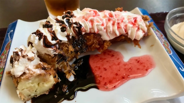「豚肉をバナナに巻きつけて揚げたものでは!?」と勘違いしたまま注文したところ、バナナ単体をフライにしたものでした。