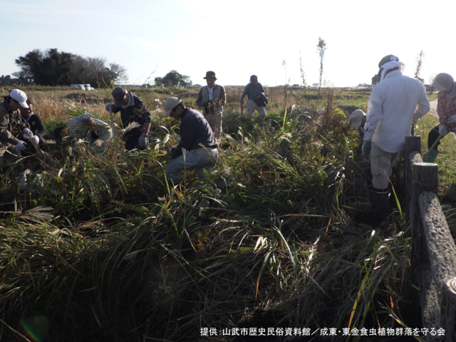 そうなんです。でもラッキーなことに、江戸時代まではすぐ隣を流れる作田川がよく氾らんしていて、ここはその時に堤防を補修するための土を取る場所になっていました。だから、その土取りのたびに背の高い植物は取りのぞかれて、土の養分が少ない状態も保たれたんです。