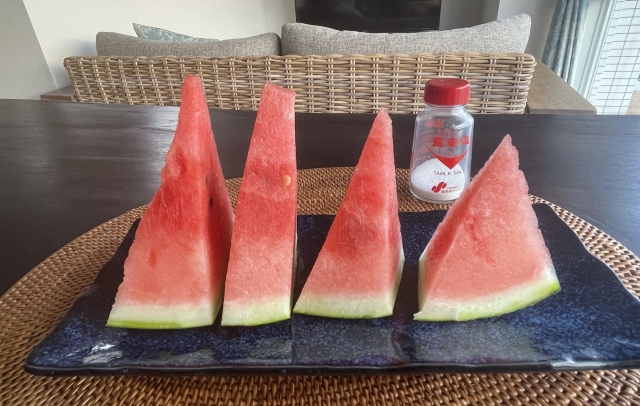 夏と言えばスイカ。塩をかけてあまじょっぱい。