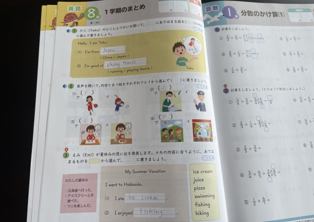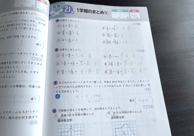 ドリルを全部やる時間はさすがにないので、まとめ問題的な「1学期の復習」を解けばよいことにする。