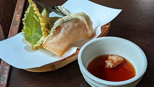 野菜の天ぷらがついてきた。パリパリの歯ごたえ