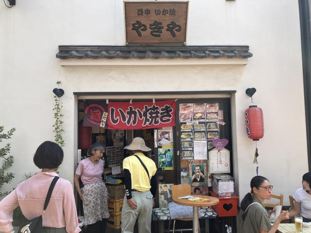 この『夕焼けだんだん』を下ってすぐの『やきや』にいか焼きせんべいはあるという。日暮里駅からは5分くらい。近い。