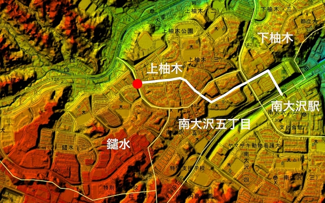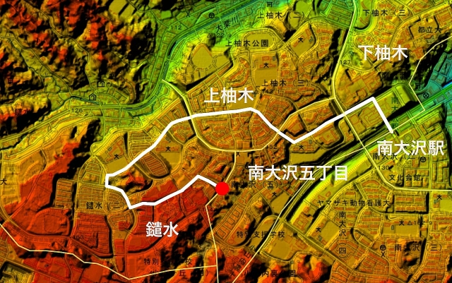 奥にある橋をくぐると、再び南大沢の住区である。現在地を確認しておこう。